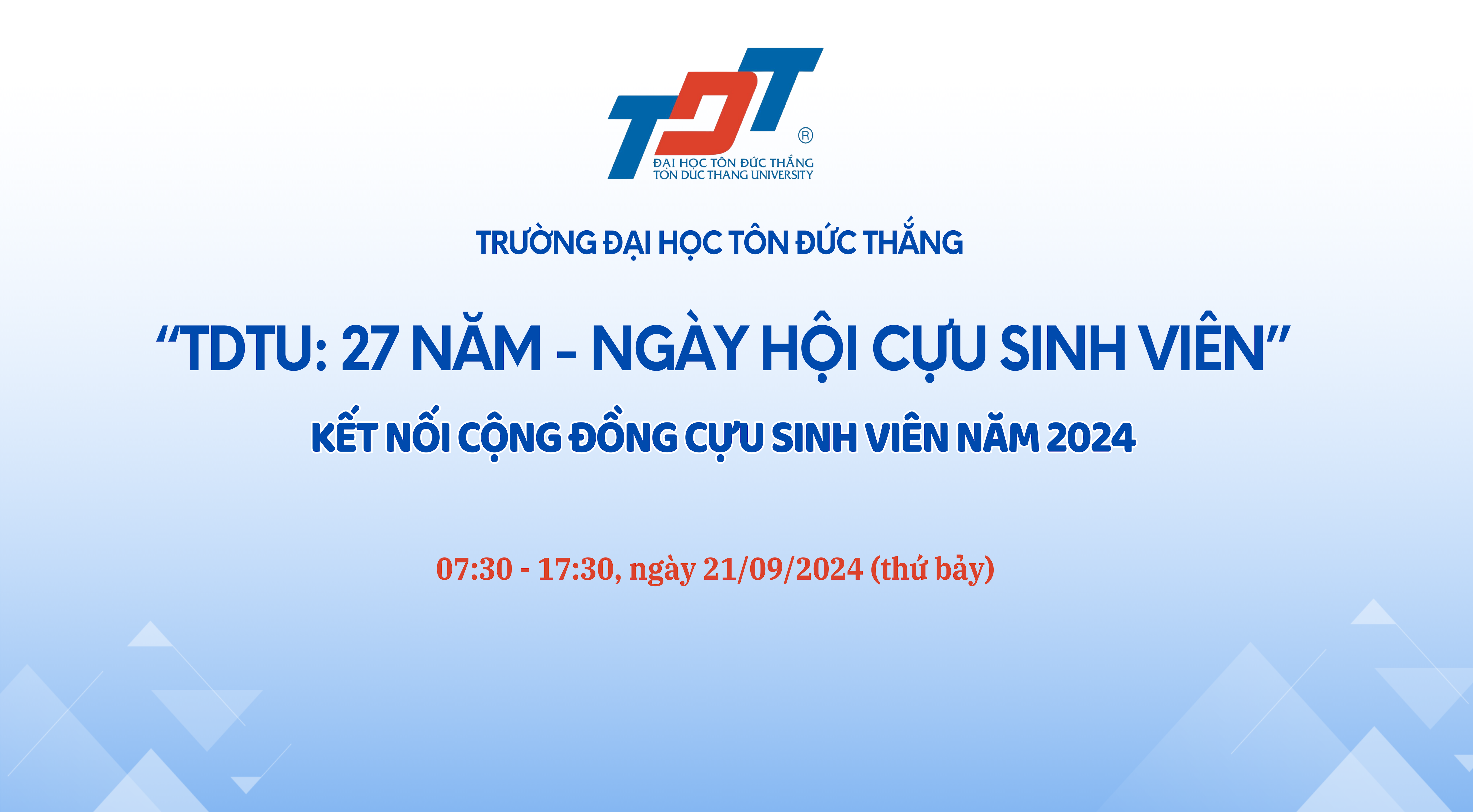 In addition, the event also aims to support alumni businesses in meeting, interacting, sharing, and exchanging information, as well as connecting with the school and faculty. Generates opportunities for generations of alumni to return to the school to connect and introduce the school’s activities to businesses. Ton Duc Thang University informs about the program “TDTU: 27 years – Alumni Day” – Connecting the alumni community in 2024 as follows: