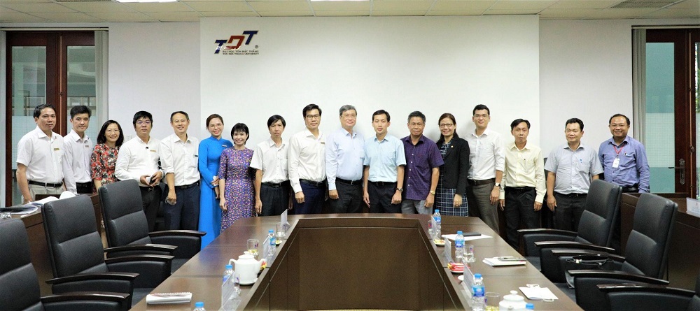 TS. Trần Trọng Đạo - Quyền hiệu trưởng, PGS. TS. Vương Đức Hoàng Quân - Bí thư Đảng ủy, Chủ tịch Hội đồng trường, TS. Võ Hoàng Duy - Phó Bí thư Đảng uỷ, Trưởng phòng Sau đại học cùng với lãnh đạo một số đơn vị chức năng của TDTU đã tiếp và làm việc với đoàn.
