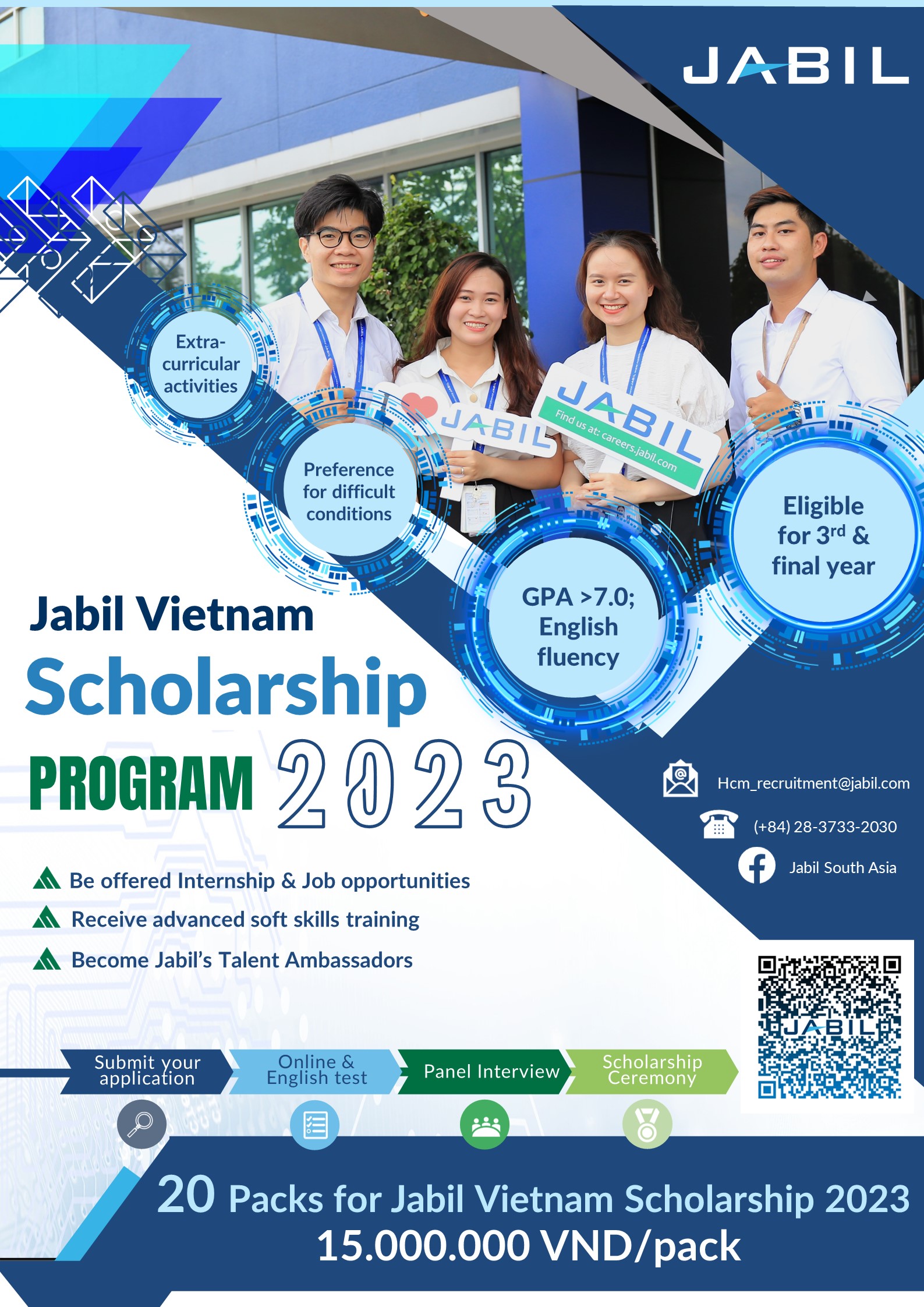 Tất cả các ứng viên nộp đơn ứng tuyển qua link: Application Form - Jabil Vietnam Scholarship Program 2023 (google.com) .