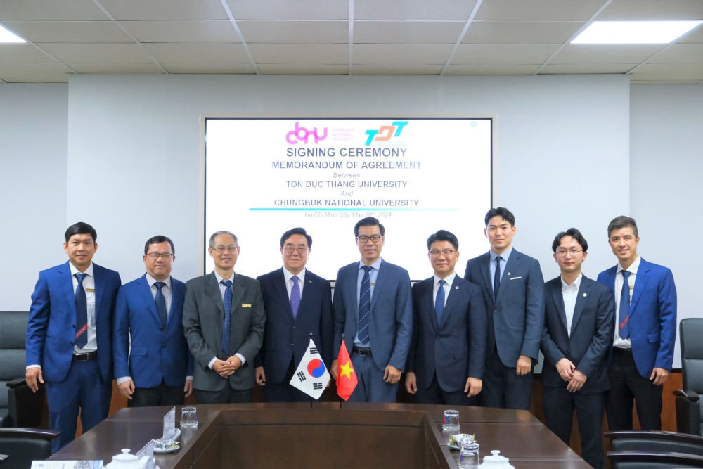 Ngày 28/5/2024, Đoàn đại biểu của Trường Đại học Quốc gia Chungbuk (CBNU), Hàn Quốc do GS.TS Chang - Seop Koh - Hiệu trưởng CBNU làm trưởng đoàn cùng đại diện các Phòng, Ban CBNU đã đến thăm, làm việc tại Trường Đại học Tôn Đức Thắng (TDTU) và tham dự Lễ ký kết thỏa thuận hợp tác giữa hai Trường.
